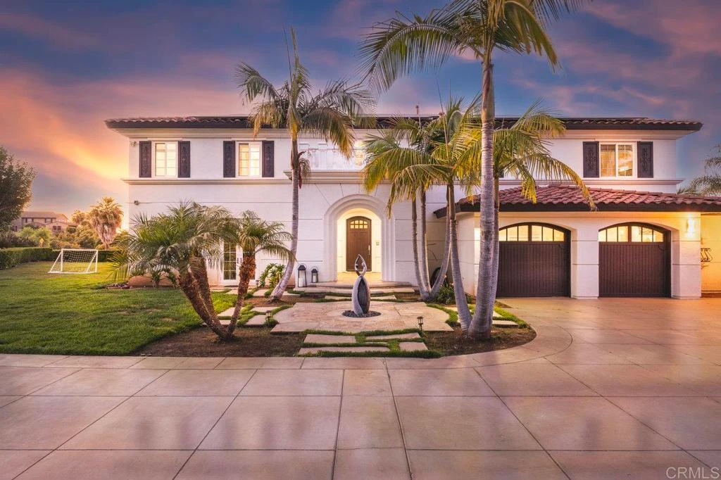 Welcome to this exquisite estate on one parcel, a true masterpiece of luxury and comfort. Built in 2003, this stunning property offers 6,198 square feet of living space on a sprawling 4.65-acre lot. Featuring 5 bedrooms and 4.5 baths, this home is designed to cater to your every need. Upon entering, you are greeted by an impressive foyer with a stunning crystal chandelier and a grand staircase wrapped in lavish black and white carpet. Soaring ceilings and walls of windows fill the home with natural light, highlighting the travertine flooring throughout. The sophisticated formal living and dining areas are separated by a dual-sided fireplace, perfect for intimate gatherings. The chef's kitchen is a culinary dream, equipped with professional-grade stainless steel appliances, a marble-topped center island, counter seating, and custom millwork. Adjacent to the kitchen, a cozy family room with a fireplace provides a warm and inviting space for relaxation. The master retreat is a sanctuary, featuring a sitting room with a fireplace, a private terrace, and a luxurious travertine bath adorned with stately columns, a jetted tub, individual granite-top vanities, and a walk-in closet. The second-story wing offers a secondary family room and three additional bedrooms, providing ample space for family and guests. A large downstairs bedroom with a full bath has been modified for handicap accessibility, with French door access to the atrium patio. Outdoor living is elevated with lush grounds, a pool and spa, and a covered BBQ island featuring granite countertops and a 4-burner grill with a single side burner, ideal for entertaining. The property boasts 47 avocado trees irrigated by well water, which includes a 10,000-gallon tank, covered RV parking with 50-amp power hook up and sewer cleanout, and a whole-house water filter system. Solar panels are paid off, and the pool heater and pumps were replaced two years ago, ensuring energy efficiency and low maintenance. Additional features include an office, a workout room, an intercom system, a security system, four fireplaces, and a central vacuum. This stunning, privately gated, and fully enclosed estate offers unparalleled luxury and tranquility. Don’t miss the opportunity to own this magnificent property, where every detail has been meticulously crafted to provide the ultimate living experience.