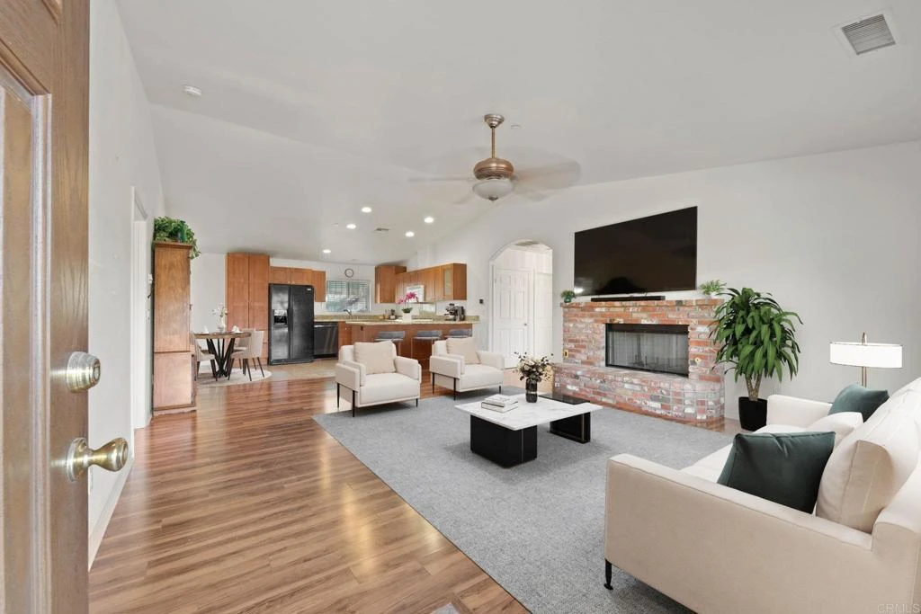 Welcome Home! This charming 3-bedroom, 2-bath residence features high ceilings and a bright, open floor plan. The spacious kitchen offers ample storage, making it perfect for cooking and entertaining. Paid solar and an oversized 2-car garage. The electric entry gate leads to a long, paved driveway, adding both convenience and security. With plenty of space for chickens, goats, horses, or even the garden of your dreams, this property is full of possibilities! Enjoy quick access to the 15 freeway, making for an easy commute to San Diego or the Inland Empire. Don't miss this opportunity.
