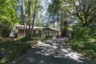 Welcome to your peaceful retreat in the historic Bracken Brae community where you can enjoy exclusive trails & river beach access. Situated on a private road & backing to greenbelt, this 3 parcel property feels secluded & quiet. The reverse floor plan elevates the main living spaces to capture light, ridge view & treetop privacy. This 3 bed, 2 bath home greets you with a livingroom featuring Brazilian cherry floors, a cozy fireplace with a woodburning insert & sweeping redwood views. The bright, thoughtfully designed kitchen showcases custom cabinets, quartz counters & a suite of Bosch appliances, opening into a sunroom where wall-to-wall windows bring the forest right to you. Step out onto the spacious deck perfect for entertaining or relaxing in fresh mountain air. Downstairs offers a private bedroom & bath plus a versatile bonus room ideal for an office, playroom or guest space. The houses flexible layout offers room to make it your own. Central heating system, exhaust fans & all appliances replaced in 2021. With oversized parking for a boat or RV, carport, 2 sheds & outdoor shower for after a river swim or muddy paws, this home blends everyday comfort with outdoor adventure. Just minutes from town & a short drive to Big Basin, its a true blend of home, nature & community.