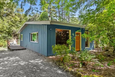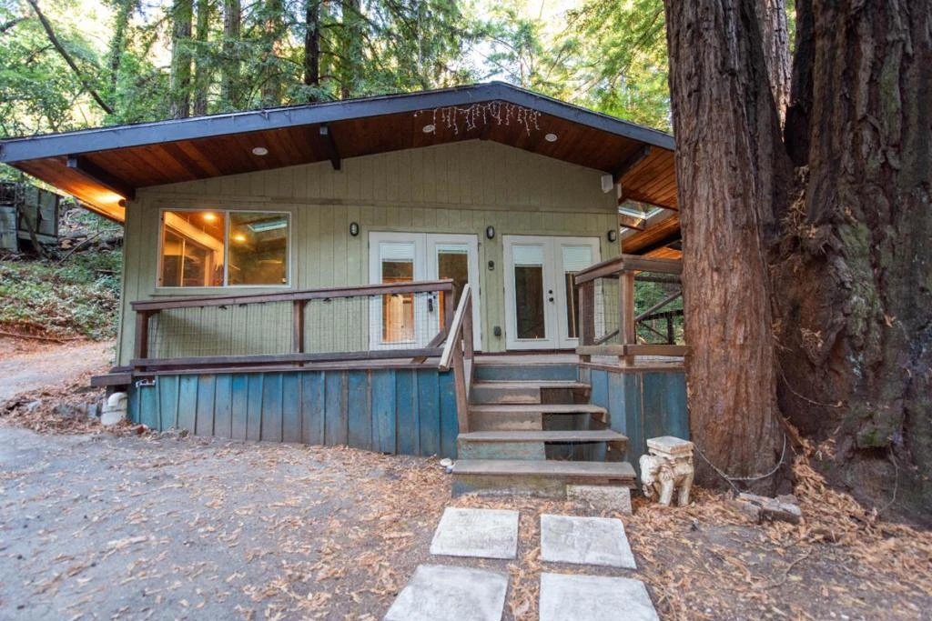 Appointment ONLY. Beautiful modern style mountain home. Great for Silicon Valley commuters and only minutes to Boulder Creek. The home features a newer modern kitchen and bath remodel, real wood floors, open floor plan and a tranquil CREEKSIDE setting. Indoor laundry area. Skylights throughout bring natural light into the home and provide views of majestic redwoods. There are 2 bedrooms and 1 bathroom and a bonus area that can be used for a large master bedroom closet. There is additional space to add master bathroom. This beautiful home features wrap decks for outdoor living. There is a small fenced area for a garden or dog. Upside Potential. Recently added backup generator. Really nice!!!
