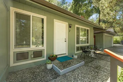 One of the best values in Santa Cruz County! Nestled within the Boulder Creek Golf & Country Club, this charming residence beckons you over a quaint red bridge spanning a serene pond. Inside, discover an open-plan interior featuring vaulted ceilings and cozy fireplace. The updated kitchen w/ open shelving, butcher block countertops, and stainless steel appliances has a breakfast bar and dining area. The large bedroom showcases 2 closets and the bathroom is updated with modern subway tiles and wood shelving. Relax and entertain on the sunny patio. There is also a partial garage, suitable for a single car or additional storage, and guest parking is available. This home is part of the Boulder Creek Golf Club, which offers many amenities including pool, restaurant, and opportunities for disc and traditional golf. Nearby, enjoy world-class hiking at Big Basin Redwood State Park, a swim in the river at Junction Park, or enjoy the vibrant community of downtown Boulder Creek's natural food stores, popular eateries, and boutique shops.