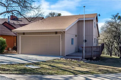 Welcome to this beautiful home in the prestigious gated community of Oak Shores! This stunning 4-bedroom, 2 full bathroom, and 2 half bathroom residence offers 2,271 square feet of luxurious living space. The two breathtaking decks overlooking Lake Nacimiento provide the perfect blend of relaxation and entertainment, offering unparalleled views of the lake and the surrounding natural beauty. The main deck, located off the living room, is designed for hosting and features ample space for dining, lounging, and enjoying the stunning sunsets over the lake. With comfortable seating and stylish decor, this deck is your ultimate retreat for both relaxation and entertaining. The home is sold fully furnished and boasts tasteful decor and high-quality furnishings, ensuring you can move in and start enjoying your new home immediately. There is an ample amount of water toys, life jackets, tools, and even a Cushman 2+2 UTV included in the sale. There is a state of the art camera system with views of the garage and the driveway included as well. Step back into the heart of the home from the main deck and you are welcomed by an open floor plan that blends together elegance and functionality. The living room with its high ceilings and exposed beams offers an inviting space for family and friends. The well-appointed kitchen features modern appliances, soft water and RO system, ample counter space, and a convenient breakfast bar. The primary ensuite bedroom is also conveniently located on the main floor. On the lower level you will find an additional living room with adjoining bar and three additional bedrooms offering an inviting space that is comfortable for the whole family. The second deck is just off of the lower level living room and offers the same incredible views as the upper deck along with a foosball table and a seating area to enjoy. Located in the sought-after Oak Shores community, you'll have access to exclusive amenities and the peace of mind that comes with a gated neighborhood. Don't miss the opportunity to make this exceptional property your own. Schedule a viewing today and experience lake living at its finest! This property is a licensed short term rental and new owner will need to check with the County of San Luis Obispo about obtaining new business license.