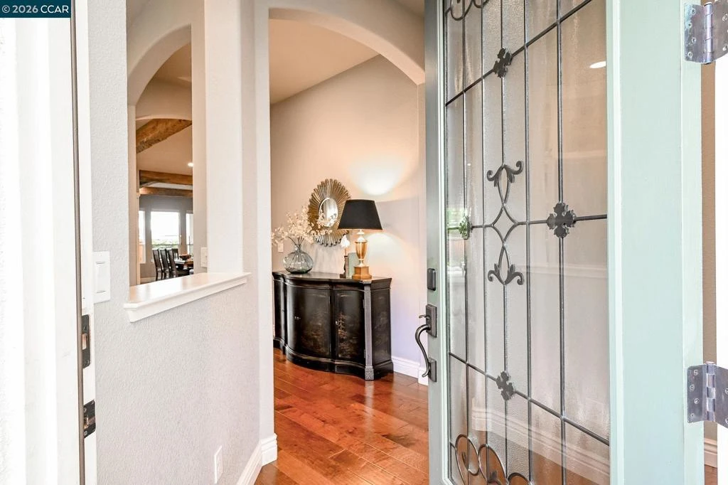 55+ Resort Living in Trilogy. Enter the Property through the Arched, Private Custom Wrought Iron Gate into the Private Front Patio Area with a Soothing Water Feature. Upgraded Glass & Decorator Iron Decor Front Door Opens to the Extensive Hardwood Floors Throughout Except Bedrooms. Den/Office with Built-in Cabinets, Shelves & Lights. Gorgeous Hardwood Floors with Rustic Wood Beam Accents in the Great Room and Formal Dining Room That Holds a Large Table & Buffet, Gorgeous Kitchen w/Wide Quartz Counters, Backsplash, Built-in Refrig., GE Monogram Appliances, Swiss Coffee White Color Upgraded Cabinets Throughout & 2 Spacious Pantries. Laundry Rm. w/Washer & Dryer, Cabinets, Sink & Utility Closet. Lg. Primary Suite w/Dual Sink Areas, Full Decorator Tile Accented Shower, Dual Closets & Upgraded Light Fixtures. Guest Bedrm Suite, Extended Builder Patio Overhang w/Fireplace, Stacked Stone Walls, Lg. Water Fountain, Built-in BBQ/Refrig., Lovely Landscaping w/Faux Grass Area too. 3 Car Tandem Garage w/Epoxy Floor & Built-in Cabinets. Gorgeous Clubhouse, Cafe, Indoor & Outdoor Pools, Spa & Gym Building, Event Center, On-Site & Off-Site Activities & so Much More. 20 Yr. Builder Pre-Paid Solar Lease, Balance of Term to be Transferred to Buyer