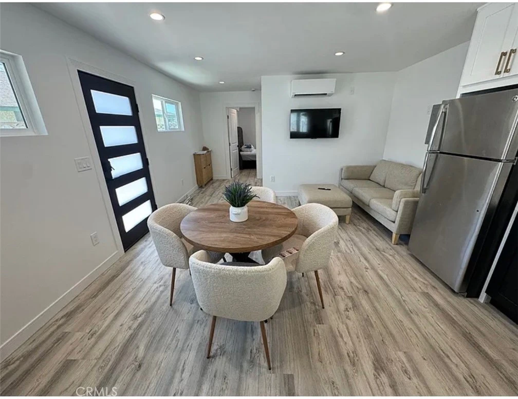 Welcome to this newly built 1-bedroom, 1-bathroom ADU offering approximately 500 square feet of modern living in a quiet Buena Park neighborhood. This thoughtfully designed unit features a private entrance and its own spacious fenced backyard with patio seating and low-maintenance turf—perfect for relaxing outdoors. Inside, the open-concept layout provides abundant natural light and comfortable living space. The unit includes a modern kitchen with quartz countertops, stainless steel appliances, and ample cabinet space. A bright dining nook sits conveniently by the window, ideal for casual meals or a work-from-home setup. The bedroom offers a queen-sized bed, blackout window coverings, ceiling fan, and a generous closet. The upgraded bathroom features a contemporary glass shower with premium finishes and a modern vanity with LED mirror. The home is equipped with a mini-split heating and air conditioning system for year-round comfort. Additional highlights include on-site laundry access, approximately 100 square feet of private storage, motion-sensor exterior lighting, and convenient street parking just steps from the entrance. Ideally located near major attractions and amenities, the property is just minutes from Knott’s Berry Farm, Porto’s Bakery, and Medieval Times, with easy access to major hospitals including Anaheim Memorial, St. Jude Medical Center, and Kaiser Permanente facilities. Disneyland and surrounding entertainment destinations are also within a short drive. This property is ideal for professionals, traveling healthcare workers, or anyone seeking a private and comfortable home in a central Orange County location. Contact us today to schedule a showing.