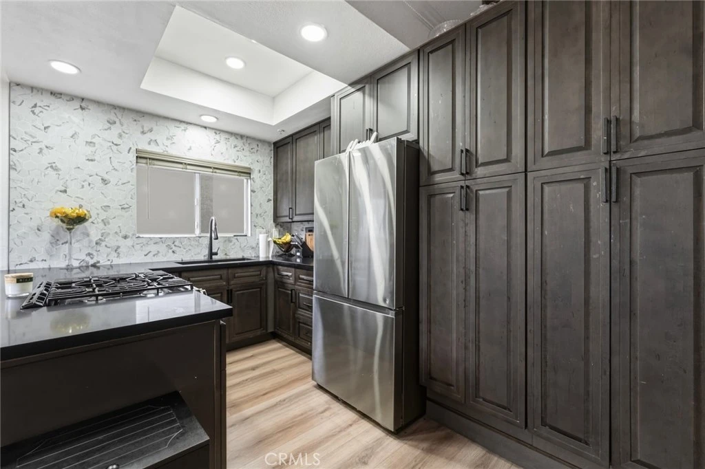 A fully remodeled kitchen anchors this three-bedroom multi-level home at 7361 8th Street, Unit 4, in the city of Buena Park, where new cabinetry, countertops, plumbing, and recessed lighting work together to create a cohesive and finished space. New vinyl flooring runs throughout the first floor, while updated flooring on the stairs and in the bedrooms carries the same sense of continuity upward through each level. Fresh baseboards and new door hardware bring a level of polish to the details that often get overlooked in a renovation. The living area includes a tiled fireplace, and fresh interior paint throughout ties the custom accent features and modern finishes together into a consistent look. The lower bathroom has been renovated as well, rounding out the upgrades across the home's multiple levels. At 1,201 square feet, the layout makes practical use of the space available, and with the work already done, this unit is ready for immediate occupancy.Conveniently located near schools, shopping centers, major freeways, and just minutes from Knott’s Berry Farm.