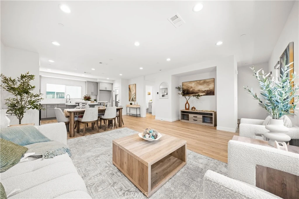 Welcome to this beautifully crafted 3-bedroom, 2.5-bathroom townhome, featuring 1,586 sq ft of modern comfort and style. Featuring high-end builder upgrades throughout, this home boasts waterproof, scratch-resistant, and fire-resistant wood flooring that combines durability with elegance. The open-concept layout is filled with natural light, creating an inviting space perfect for everyday living and entertaining. The chef’s kitchen stands out with sleek soft-close drawers and contemporary finishes that make meal prep effortless. Spacious bedrooms provide plenty of room to relax, including a large primary suite with a private bath for added privacy and convenience. Energy-efficient double-pane Milgard windows help keep your home quiet and comfortable, while solar panels reduce your energy costs and support a sustainable lifestyle. Additional features include an attached garage, in-unit laundry, and ample storage to meet your everyday needs. Nestled in the sought-after community of The Nines @ Ninth Street, this home offers low-maintenance living and quick access to shopping, dining, and major commuter routes—just 1 minute to I-5 and 5 minutes to CA-91. This unit is a perfect fit for new families, young couples, and anyone seeking a fresh, modern home with all the right upgrades!