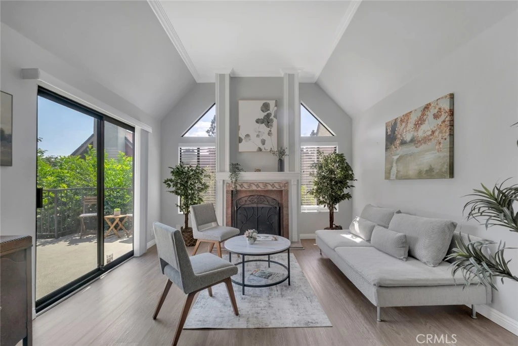 Bright & Spacious Chalet-Style Top-Floor Condo in Burbank. This inviting top-floor condo captures a chalet-inspired feel with soaring vaulted ceilings, natural light, and a decorative fireplace, creating a cozy mountain retreat ambiance seldom found in urban settings. The home features 2 bedrooms, 2 bathrooms, a charming kitchen, a walk-in closet, and the convenience of in-unit laundry. Nestled at the rear of the complex for added privacy and mountain views, the residence features two welcoming outdoor spaces, accessible from both the living room and bedrooms—perfect for relaxing with morning coffee or enjoying evening sunset views. The location is unbeatable: just three blocks from Starbucks, close to Earthwalk Park, and minutes from McCambridge Park’s pool, tennis, and basketball courts. You’ll appreciate easy freeway access, proximity to the Empire Shopping Center, Media City Mall, AMC Theatres, countless dining options, and major studios. This complex is surrounded by lush trees and flowers, offering wonderful amenities including elevators, two secured parking spaces, a spa, and a fitness room. Experience the best of Burbank living in this charming chalet-style home!