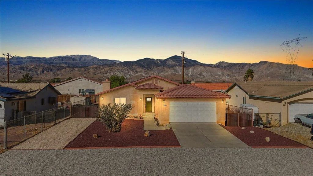 Charming 2006-Built Home with Stunning Mountain Views! Welcome to this inviting 3-bedroom, 2-bathroom home offering over 1,600 square feet of interior living space. The open floor plan features vaulted ceilings and a decorative stone fireplace in the living room, seamlessly flowing into a spacious kitchen. The heart of the kitchen boasts ample counter and cabinet space, a breakfast bar, pantry, and a generous dining area. The expansive master bedroom offers plenty of space for a seating area or home office. The home showcases modern white walls throughout, with newly installed flooring in the bedrooms and elegant baseboards for a finished look. Step outside to the backyard, complete with a covered patio and a large space perfect for outdoor entertaining, all while taking in the breathtaking mountain views. The property also includes a 2-car garage and convenient RV parking. Assumable solar panels provide instant utility savings for eco-friendly living. Located in Cabazon, this home is just a short distance from the 10 freeway, close to the Cabazon Outlets, Morongo Casino, and only 15 minutes from Palm Springs. Call today to schedule your private showing!