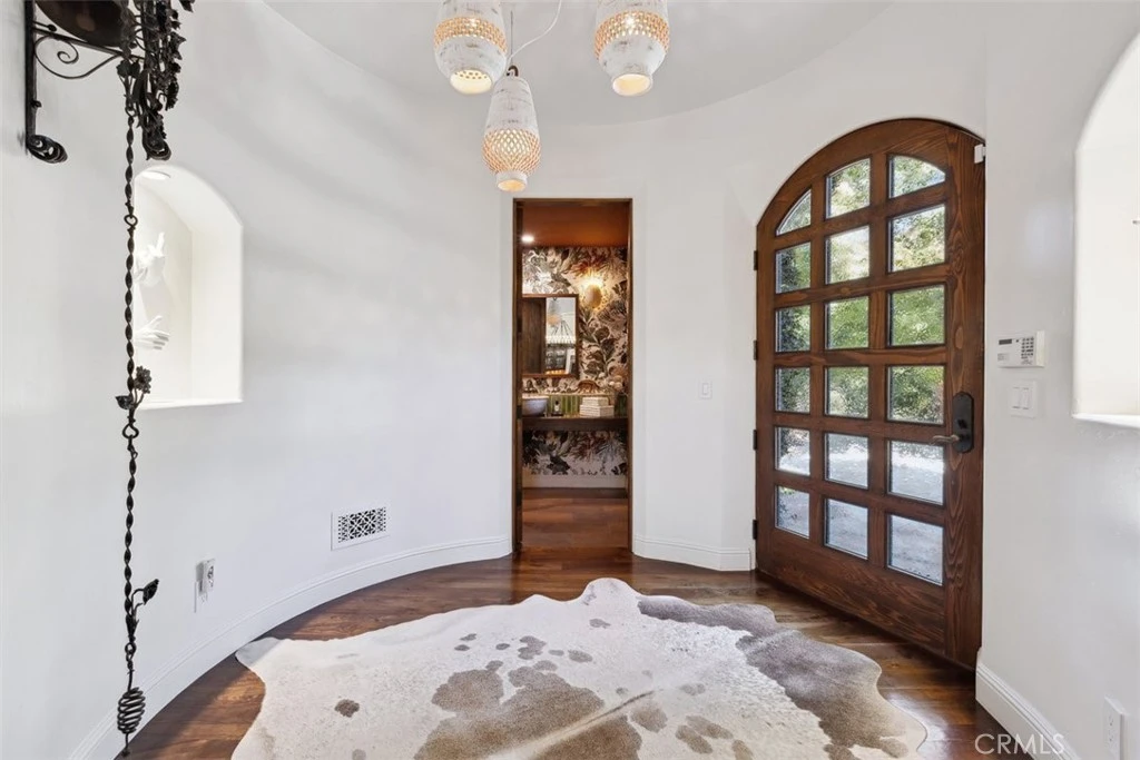 Welcome to “Hacienda de Roble”, A Timeless Custom Estate on 2 Acres of serene beauty. Nestled in the heart of nature, Set on 2 acres surrounded by majestic oak trees and rolling mountains, this one-of-a-kind property is a true sanctuary. A gated entrance and long circular driveway provide both security and ample parking space. Exquisite outdoor living by stepping outside to discover a variety of outdoor spaces. The flat, grassy yard is fully fenced, while stone patios, a vine-covered pergola, and a BBQ area set amidst lush botanical gardens creating the perfect backdrop for al fresco dining. Unwind in the outdoor hot tub, sip drinks at the wet bar by the creek, or gather around the fire pit for amazing sunsets. For the animal lovers, the property also includes small barns for goats, ducks, or chickens that enjoy a small flowing water feature. Designed by renowned architect Doug Burdge, the home’s architecture is dramatic and inspiring. The great room features cathedral wood-beamed ceilings, a striking herringbone brick fireplace, and walls of glass that offer expansive views of the property. The gourmet kitchen is a chef’s dream, boasting a massive natural stone island, Subzero refrigerator, Heston range, and Miele dishwashers. The adjacent bar area with a wine fridge and copper countertop is perfect for entertaining and butlers pantry with an additional refrigerator. A spacious family room flows seamlessly to one of the many outdoor patios, while an ensuite guest bedroom and multipurpose laundry room complete the main level. Luxurious primary suite ascend the custom tile and wood stairs to the private suite where vaulted wood-beamed ceilings, fireplace, leather tiled floors and a private balcony overlook the serene grounds. The spa like primary bath features designer wall coverings, a freestanding tub, separate shower and designer closet. Additional features include a cozy loft ideal for a library or play area, a Belvedere room with built in desks great for an office that looks out over the stunning estate. Recent updates include a newer roof, newer modern windows, and an updated HVAC system. For added peace of mind, the property is equipped with a Wi-Fi-enabled backup whole home generator. “Hacienda de Roble” is where nature and luxury converge, providing a serene and elegant living experience. This estate offers the perfect blend of privacy and elegance. Don’t miss the opportunity to own this exceptional home.