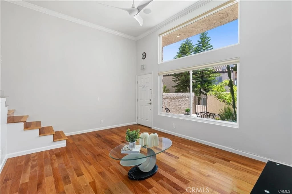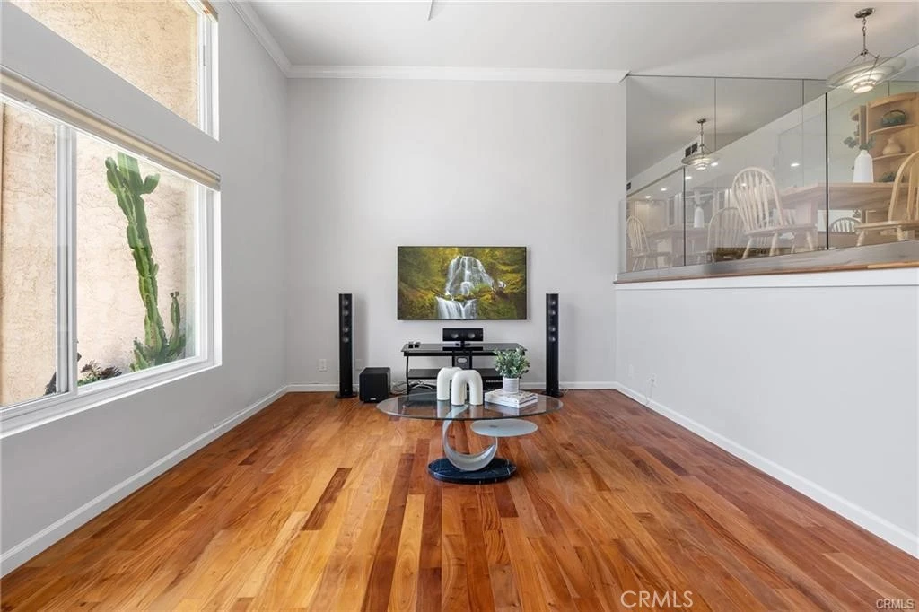 Beautifully maintained and partially furnished 2-bedroom, 2-bath condominium located in the heart of Calabasas. This light-filled home features an open floor plan with soaring ceilings, recessed lighting, and stylish glass railings overlooking the kitchen and dining area. The updated kitchen includes granite countertops, center island with bar seating, ample cabinetry, and Bosch appliances. The spacious primary suite offers wall-to-wall mirrored closets and an updated en-suite bathroom with a large walk-in shower. The secondary bedroom is generously sized with a private balcony. Additional highlights include wood flooring, dual-pane windows, ceiling fans, and in-unit washer hookups. Private gated front patio with landscaping and bistro seating creates a charming outdoor retreat. Shared garage includes two tandem parking spaces, private storage unit, and EV charger outlet. Community amenities include a heated pool and spa, with laundry facilities nearby. Prime location directly across from Calabasas Lake and close to the Calabasas Swim and Tennis Club, The Commons, Old Town Calabasas, farmers market, shopping, dining, and top-rated Las Virgenes schools.