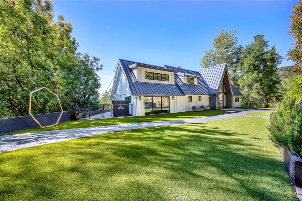 Perfect Home with Spectacular Views. A Truly Must See! Modern living at its finest in this stylish mountaintop estate with Private Gate. Peacefully located on a quiet and secluded 3.7 acres surrounded by nature in the tranquility of the Malibu Hills. This 4 bedroom, 3.5 bath plus office, modern farmhouse received a tasteful and timeless remodel in 2020 by acclaimed designer Jennifer Farrell featuring custom glass walls, a floating glass and steel staircase, herringbone floors, wood burning fireplace and a NanaWall that opens to panoramic views of the Santa Monica Mountains. The luxurious interior includes a gourmet kitchen with stainless steel appliances, Caesarstone and porcelain countertops, a walnut island, and a dedicated office with stunning views opening to a large wrap-around deck. Two elegantly appointed bedrooms, a full bathroom, powder, and a laundry room complete the downstairs. The upstairs includes a beautifully appointed guest suite and the primary wing which boasts custom closets, a coffee and wine bar, and Fleetwood glass doors that open to a private balcony with mesmerizing views. The primary bathroom is outfitted with separate vanities, an ultra-stylish wet room with a luxury 3-way shower, a soaking tub, and a skylight. This mountaintop estate is truly one of a kind. Home Gym included! Negotiable