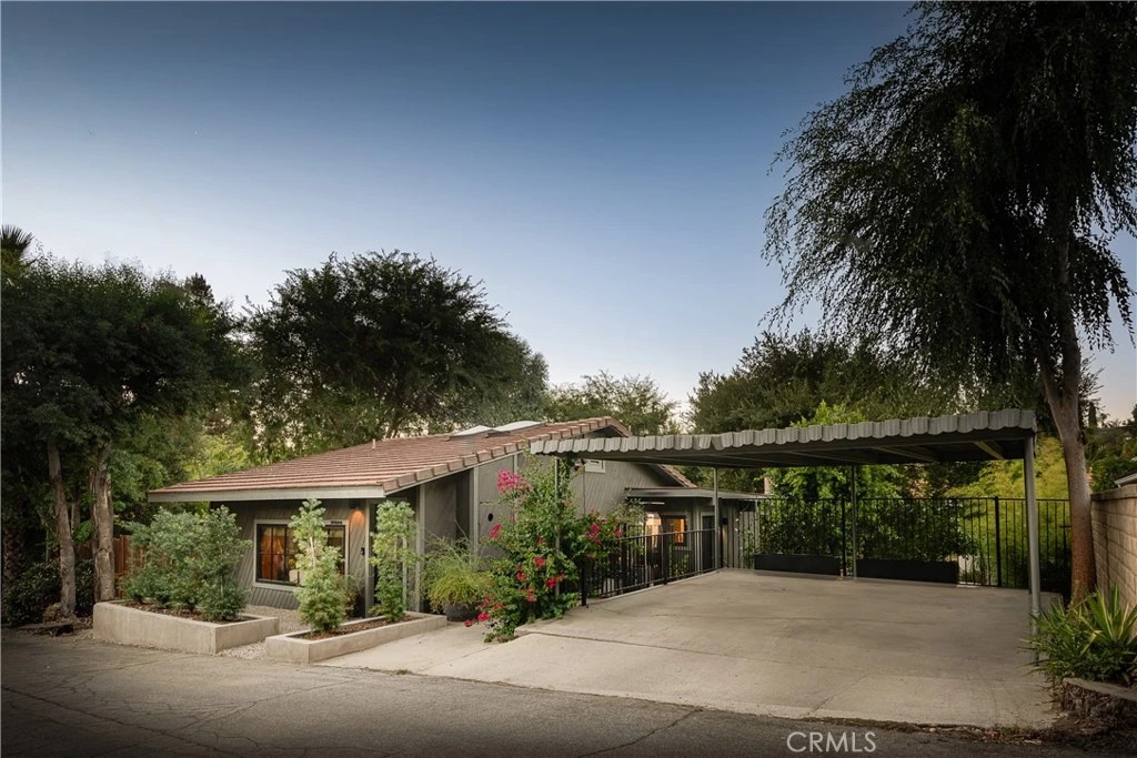 Stunning Mid-Century modern located in the highly sought after Park Moderne neighborhood, the ‘bird streets’ of Calabasas. Situated on a picturesque expansive 9,000 sqft. lot at the end of a cul-de-sac featuring 2 bedrooms, 2 bathrooms and nearly 1400 square feet of designer living space and an additional 120 square foot detached studio perfect for a home office or guest studio. Completely remodeled and meticulously designed with a modern wood cladding accent wall complete with built-in shelves and seating and white oak flooring that seamlessly flow through the open concept layout. The well appointed and beautifully finished kitchen features custom cabinetry, gorgeous honeycomb backsplash, elegant fixtures, and porcelain countertops. The family room is enhanced with an artistic freestanding fireplace that adds a touch of elegance and warmth with beautiful modern windows that overlook the lush outdoor greenery. The highlight of this home is undoubtedly the main living space which features pitched ceilings with massive skylights and an original wood clad wall and ceilings. The primary bedroom has stylish, high-end built-in closets, providing ample storage. Both bathrooms have been thoughtfully remodeled with new fixtures, contemporary vanities, and sophisticated Walker Zanger tiles. The freestanding outdoor studio features wood paneling throughout, its own split HVAC system and large sliding doors that overlook the backyard. The outdoor oasis is completely private and enclosed, with luscious landscaping and greenery providing seclusion and tranquility and a possibility of future expansion. Additional highlights include ample basement storage and a charming array of outdoor features, such as a variety of citrus trees, an avocado tree, and a tomato plant. Each room offers panoramic views of the verdant surroundings. Located in the award winning and highly acclaimed Las Virgenes school district and near some of the best private schools in Los Angeles. Close to many fine shops, restaurants, and attractions including The Calabasas Commons, Westfield-Topanga Village, Santa Monica Mountain hiking trails and Malibu beaches.