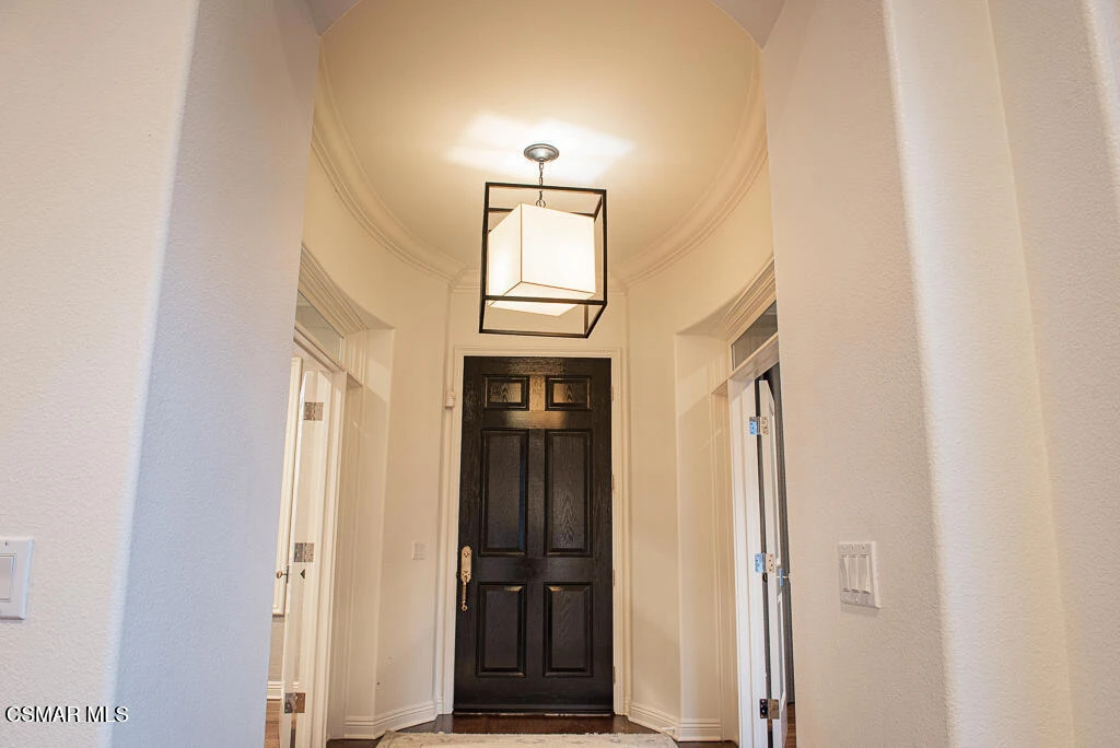 An East Coast-inspired traditional, beautifully designed for a glamorous Southern California summer.Dark wood floors and crisp white walls create a striking, gallery like backdrop for the home's bold, curated style. A formal living room and a gracious private office open to an intimate courtyard, setting a dramatic tone the moment you arrive. The formal dining room, framed by French doors, flows effortlessly to the patio and tranquil fountain, perfect for unforgettable dinners and celebrations.The all-white chef's kitchen is anchored by an oversized center island made for everything from champagne brunches to chef-guided dinner parties. A main-level en-suite bedroom and a fireplace-warmed family room open to the backyard, creating seamless indoor-outdoor living.Upstairs, a lounge area joins four bedrooms, including a show-stopping primary suite with its own fireplace and a newly remodeled gray-marble spa bath, your private retreat at the end of every day.Outside, the resort experience continues with a pool and spa, outdoor fireplace and lounge areas, built-in BBQ, and a half court, every space designed for entertaining, relaxing, and living beautifully.Set behind the gates of The Oaks of Calabasas, this residence offers a rare opportunity to enjoy one of Southern California's most sought-after private communities, known for its privacy, sense of neighborhood, and effortless access to Calabasas' celebrated dining and shopping, as well as Malibu's beaches and Beverly Hills.This isn't just a home. It's a five-star summer in one of the most coveted enclaves in the Valley.