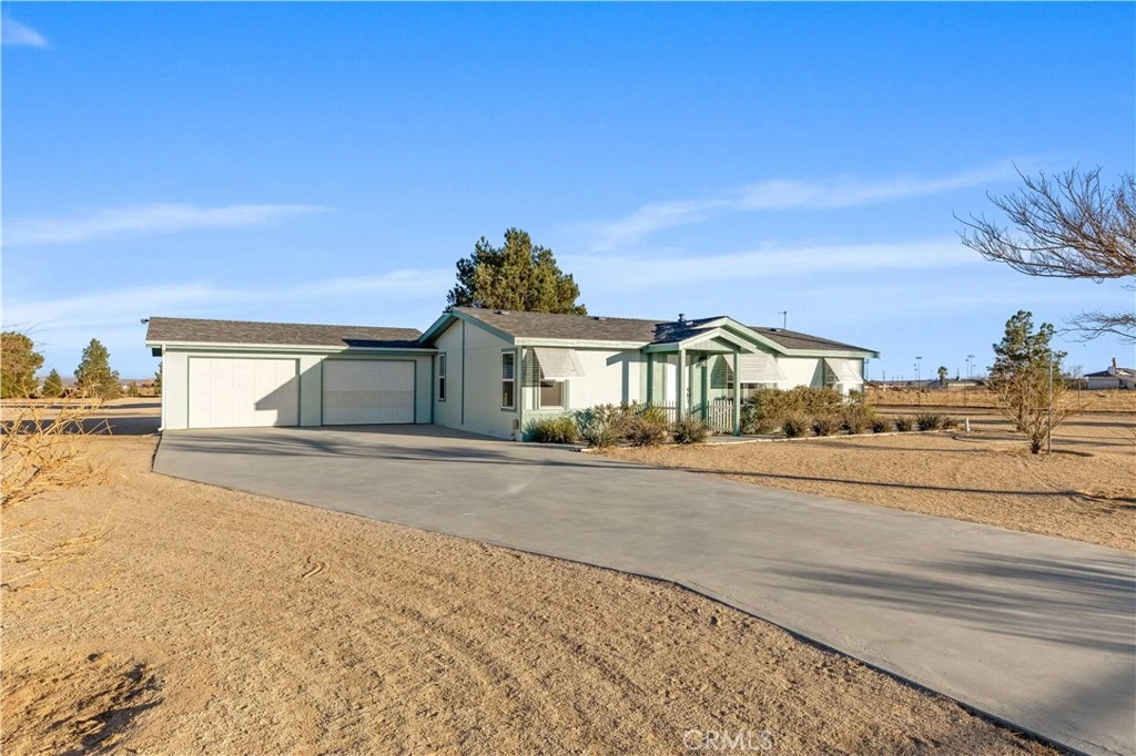 Beautifully Updated Turnkey California City Modular Home! This 3 bedroom 2 and a half bath home is sitting in 2.6 acre land. Open kitchen and living room. Recently updated with a NEW Roof, interior and exterior paint, five NEW windows molding and screens, NEW flooring in kitchen both bathrooms and laundry mud room, NEW Dishwasher and kitchen faucet, NEW kitchen lighting, blinds and toilets in both bathrooms. This property comes with a washer, a dryer and refrigerator. On the back you have a 60 x 80 insulated metal Workshop with skylights, electrically wired for 220 volts, a large 100,000 BTU gas heater, tankless water heater, a half bath, a kitchenette which includes two refrigerators and plenty of counter space, two 50's style table and chair sets, washer and dryer, 12,000 lbs extended wheelbase 4 post lift, enclosed is a small workroom with storage and window AC unit, with attached storage room. This is a wonderfully unique property fully fenced and lined with pine trees, plenty of hose hookups throughout the property for gardening. Come and take a look, you will fall in love with the lifestyle this home brings.