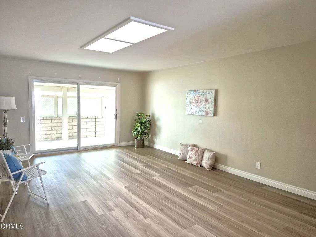 Welcome to this beautifully upgraded Del Mar model in Leisure Village Camarillo 55+ community, offering over 1100 square feet of comfortable, light-filled living space in one of the most desirable locations--just steps from the Recreation Center!This move-in ready home features dual-pane windows, vinyl plank flooring throughout, neutral paint, high baseboards, and smooth ceilings. The spacious living room is enhanced by a skylight for natural light and is ready for easy TV mounting. The updated kitchen offers custom cabinetry, smooth countertops, white appliances, recessed lighting, and a charming dining area surrounded by windows.Both bedrooms are generously sized--a key feature of the popular Del Mar model. The primary suite includes mirrored closet doors and an en-suite bathroom with a tub/shower combo, while the hall bathroom features a large vanity and walk-in shower. Enjoy year-round comfort with a recently updated HVAC system.Step outside to a nice-size covered patio with peaceful tree views, complete with a block wall and lattice/trellis for added privacy--perfect for relaxing or entertaining. The extra-long garage provides ample storage with built-in cabinets, laundry hook-ups and overhead racks.Living in Leisure Village means enjoying a guard-gated, resort-style lifestyle with an incredible array of amenities including a 18-hole par-3 golf course, tennis, pickle ball, pool & spa, fitness center, billiards, woodshop, ceramics studio, and countless clubs and activities. The HOA covers water, sewer, trash, cable TV, internet, landscaping, exterior maintenance, roof, and 24-hour security, making for truly low-maintenance living.Don't miss this opportunity to enjoy comfort, convenience, and community in one of Camarillo's most sought-after 55+ neighborhoods!