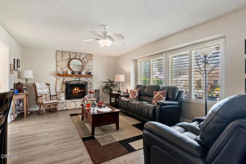Rare opportunity to own one of the largest homes in The Village. What makes this one so special is that 2 people could live in this home, each with their own bedroom PLUS their own sitting area/office/craft or reading room. In addition to the large den that comes standard with this model, this particular home also has another room off the living room AND it has an outdoor patio. This move-in ready home offers exceptional space, major upgrades, and the active adult lifestyle buyers are searching for in Camarillo real estate.With vaulted ceilings, the expansive living room opens through French doors to a patio enclosure bonus room, creating flexible indoor-outdoor living space. The oversized den/family room features a wood-burning fireplace and provides endless possibilities on how to use this large room - some people even use it as a dining room for entertaining. Extensive system upgrades make this Leisure Village Camarillo 55+ home for sale especially attractive: HVAC (12/5/2024), water heater (3/9/2022), electrical panel (2022), dual-pane windows and slider (2019), and a new block patio wall with privacy trellis (2021). Additional improvements include tile and vinyl wood-look flooring (2019), carpet (2019), updated toilets (2019), shower door (2020), plantation shutters (2020), new dining room blinds (2020), replaced interior doors, ceiling fans, pull-down ladder access to a very large attic, and washer, dryer, refrigerator, and new sink (2019). The kitchen features stainless steel appliances including dishwasher, oven, and refrigerator, along with convenient pull-out pantry shelving.Located inside the guard-gated Leisure Village 55+ community in Camarillo, residents enjoy 24-hour security, an 18-hole par-3 golf course, heated pool and spa, fitness center, tennis, pickleball, woodshop, ceramics studio, billiards, library, RV parking (fee), and dozens of clubs and social activities. Beautiful greenbelts and walking paths make Leisure Village one of the most desirable active adult communities in Ventura County.The HOA includes cable TV, internet, water, trash, sewer, exterior maintenance (including roof), landscaping, security, and full access to amenities -- offering simplified, predictable living.If you are searching for the largest floor plan in Leisure Village Camarillo 55+ community, this La Jolla model stands out for condition, upgrades, and lifestyle value. Homes like this do not last long.