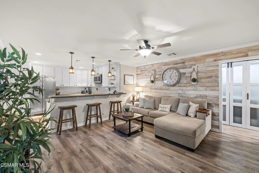 Pride of ownership and attention to detail is highly noticeable throughout this immaculately updated Mission Oaks home. Upon walking up you will notice the lush and well maintained landscape. Stepping inside, the home boasts luxury plank flooring throughout, and an open concept from living room to kitchen is on full display. The kitchen provides shaker style cabinetry with ample storage, stone countertops with subway tile backsplash and stainless appliances. Walking down the hall towards the primary bedroom you pass a laundry area and updated bathroom including newer vanity with stone countertop and tile backsplash, as well as the tiled shower/tub. The primary bedroom has ample space and offers closet built in shelving and sliding door to access the backyard. The ensuite primary bathroom offers a walk in tile shower and stone countertop vanity. Two additional bedrooms are located down the hall for extra privacy. The home also boasts a permitted garage conversion into home office. The office has plenty of built in shelving, storage, and desk space, perfect for getting work done. Out back is stamped concrete, a large Tuff Shed and beautiful covered patio area with gas fireplace, water feature, built in fridge and lots of sitting room. This home has so much to offer it needs to be seen in person, so don't wait!