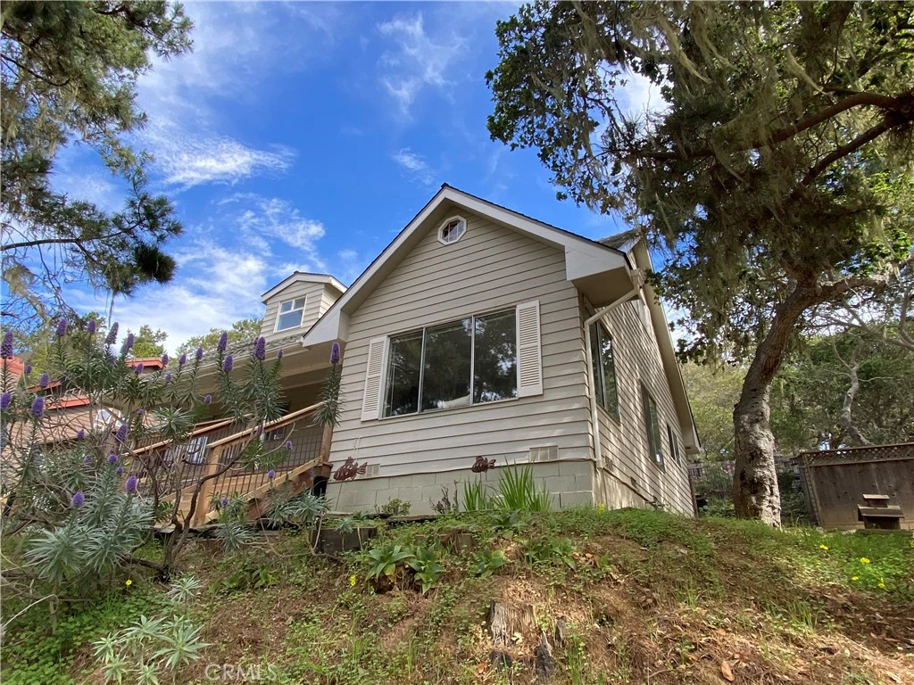 On a road less traveled you will find this classic 4 bed, 2 bath home on a triple lot in the village of Cambria Pines by the Sea. This Lodge Hill home offers a big front porch for enjoying the forest setting. From the entry you find spacious living room with picture windows on 2 walls on your right. The eat-in kitchen offers room for huge dining table, and the tall window wall brings in the landscaped back yard, with its seating areas, terraces, fruit trees and raised bed planters. There are also 2 bedrooms and a whimsical bathroom, as well as a mud room/laundry room that leads to the gardens in back. Upstairs you find a generous main bedroom, a 4th bedroom, and a full bath, plus ample storage. It is an easy walk to the 430+ acre Fiscalini Ranch Preserve and its trails to the bluff trail and Moonstone Beach Drive. Neighbors show pride of ownership and it is so quiet here, and make this a great place to land in Cambria. The Central Coast has so much to offer, like Big Sur, wine country, secluded beaches, fresh fish in Morro Bay and all the culture San Luis Obispo has to offer. Come see for yourself!