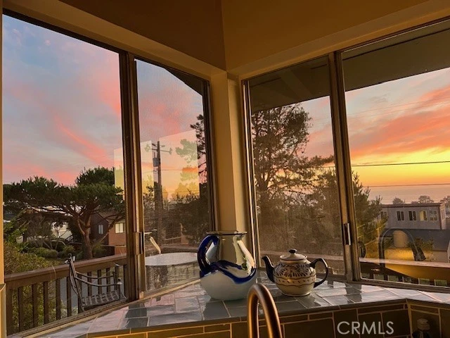 Beautifully furnished ocean-view home located on Marine Terrace, offering privacy, versatility, and true single-level living. The main entry level features two bedrooms and a full bath, with sweeping ocean views visible the moment you step through the front door. The home was remodeled approximately five years ago and includes new interior and exterior paint, durable LVF flooring throughout, updated window coverings, appliances, countertops, fixtures, and lighting. The open-concept living, dining, and kitchen areas flow seamlessly to a generous wraparound deck, ideal for outdoor dining, relaxing, and enjoying sunsets. A west-facing sliding glass door provides direct access from the living room to the deck. The primary bedroom opens to an attached sunroom highlighted by colorful Mexican and Saltillo tile flooring, with direct access to the hall bath and a sliding glass door leading to the enclosed backyard—an inviting space for morning coffee or quiet moments with a book. The upper level offers a spacious ocean-view media room or den with its own private deck, walk-in closet, and tastefully updated three-quarter bath. This flexible space is perfect for a home office, guest suite, or private retreat, complete with seating to enjoy sunsets, a dedicated workspace, and a large wall-mounted flat-screen TV. Additional features include a two-car garage with abundant storage and shelving, a washer and dryer, and a long paved driveway providing ample off-street parking. Set on a large, private lot between Emmons and Oxford Streets, the home is surrounded by natural beauty and frequent wildlife sightings, enhancing the peaceful, sanctuary-like setting. A one-year lease is available, along with short-term rental options (minimum three months). Tenant is responsible for gas, electric, trash, water and sewer (CCSD), WiFi, and cable TV. Owner pays for landscaping and water softener service. Pets considered on a per-applicant basis. Contact me for additional details.