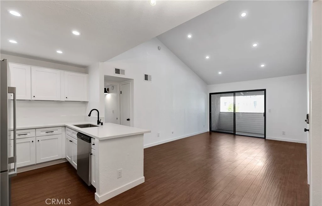 Open floor plan, this charming condo offers vaulted ceilings, updated kitchen with quartz counters, updated bathroom and includes all the appliances. Central air and heat, 2 assigned parking spaces, all gated, plenty os storage spaces, walking closet plus an additional big closet in the hallway with built in cabinets . Condo has recess throughout, hardwood laminate floors with a beautiful patio overlooking the pool area. There is laundry area below the unit.
