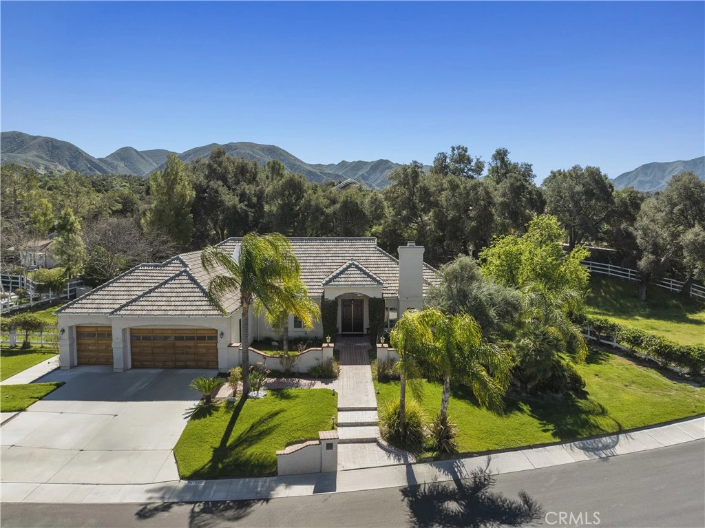 Welcome to one of the most desirable streets in all of Sand Canyon, located on a flat cul de sac within the sought after Crystal Springs Ranch community. Set on nearly one acre, this single story estate offers approximately 2,900 square feet with four bedrooms including a den that can easily function as a fourth bedroom, three full bathrooms, and a layout designed for both everyday living and entertaining. The home is filled with natural light and features high ceilings, wood floors, French doors, and three fireplaces that create a warm and inviting atmosphere. The refreshed kitchen serves as the heart of the home and has been thoughtfully arranged to create a spacious eat in gathering area, featuring stainless steel appliances, double ovens, granite countertops, a large center island with bar seating, a hammered copper farmhouse sink, bronze fixtures, and a charming breakfast nook with custom built in seating. The built in banquet seating includes hidden storage beneath the seats, adding both character and functionality. At the front of the home, the main living room offers an inviting space for relaxing or entertaining. Between two secondary bedrooms is a versatile flex space ideal for a study, work area, or lounge, with those bedrooms sharing a Jack and Jill bathroom, while the current den can easily function as a fourth bedroom and connects to a full bathroom, providing flexibility for guests, a home office, or multi generational living. The primary suite offers a retreat like setting with a door to the backyard and a spa inspired bathroom featuring custom cabinetry, elegant vanities, glass block details, a handcrafted hammered copper soaking tub, and a hidden walk in closet. The backyard creates a private entertainer’s setting with a sparkling pool and spa, full outdoor kitchen with built in barbecue and sink, permanent gazebo, and a large wraparound covered patio with ceiling fans that stretches nearly the length of the home, surrounded by mature oak trees and natural surroundings. Additional features include a three car garage, indoor laundry room, and space for potential RV parking. Crystal Springs Ranch offers a peaceful setting with a low HOA of approximately $150 per year and no Mello Roos while still being just minutes from shopping, dining, and freeway access in Santa Clarita.