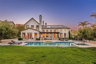 Welcome to luxury living in the prestigious gated Aliento community in Canyon Country. This stunning former model home offers approximately 4,172 square feet of thoughtfully designed living space with 5 bedrooms and 5 bathrooms, perfectly blending sophisticated design with modern comfort.From the moment you arrive, the home impresses with beautiful curb appeal, lush drought-tolerant landscaping, and an elegant entry that sets the tone for what’s inside. The interior showcases refined designer finishes including crown molding, exposed wood beam ceilings, custom stone and wood accent walls, and rich engineered wood flooring, creating a warm yet elevated atmosphere throughout the home.At the heart of the home is a spectacular open-concept great room filled with natural light. Expansive stacking glass doors seamlessly connect the indoor living areas to the outdoor entertaining space, capturing breathtaking valley, hillside, and city-light views and creating the ultimate indoor-outdoor California lifestyle.The chef’s kitchen is designed for both everyday living and entertaining, featuring: Oversized center island with bar seating,Quartz countertops,Custom maple and glass cabinetry with soft-close features,Walk-in pantry,Designer pendant lighting,Premium stainless steel appliances,Just off the main living area, a versatile space with a cozy gas fireplace can serve as a formal dining room, office, or creative flex space.Upstairs, the luxurious primary suite serves as a private retreat with stunning mountain views. The spa-inspired bathroom offers dual vanities, limestone countertops, an oversized walk-in shower, soaking tub, and a spacious walk-in closet designed for comfort and style.All bedrooms are generously sized and feature ensuite bathrooms, including a convenient main-level bedroom and bath, ideal for guests or multi-generational living. Additional living spaces include a large upstairs loft and a downstairs club room with wet bar and beverage center, perfect for entertaining. Step outside to a beautifully designed backyard featuring a built-in BBQ with bar seating, inviting outdoor gathering areas, and peaceful hillside views. Whether hosting guests or enjoying quiet evenings, this outdoor space offers exceptional privacy and comfort.
