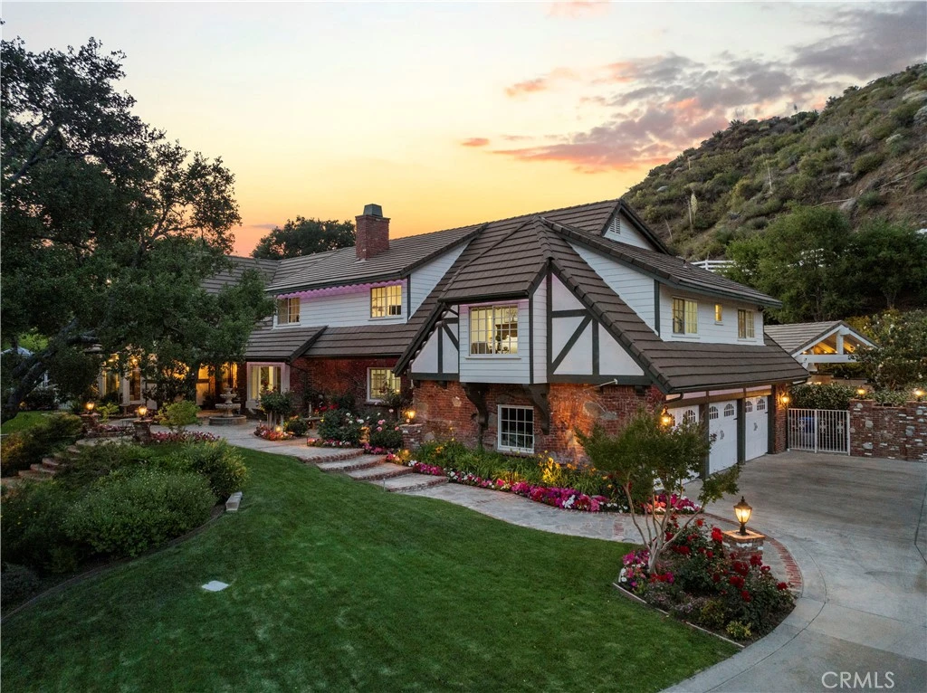 Welcome to 25730 Sand Canyon Rd, a stunning private, custom estate nestled in Santa Clarita's prestigious Sand Canyon. This luxurious 5-bedroom, 4-bathroom residence offers the rare combination of refined living and total seclusion. Private gated entry leads to sprawling grounds adorned with 7 heritage oak trees, 10 planted oak trees, multiple citrus, apple, and peach trees, a boutique vineyard, PLUS a custom climate-controlled wine tasting room—perfect for intimate gatherings and entertaining in style. The expansive property includes an RV garage with over 40’ of space and full hookups, a 3-car garage, generous guest parking plus 50 amp service to the RV garage and shop. Inside, the home is full of warmth and character: vaulted wood-beamed ceilings, refinished oak floors, beautiful custom fireplaces, custom lighting, plenty of natural light PLUS a new whole house water filtration system to ensure clean water throughout the home. The formal dining room has a built-in china hutch—perfect for dinner parties or holidays. You'll fall in love with the fully remodeled chef’s kitchen, featuring a Sub-Zero refrigerator, Wolf range, farmhouse sink, marble countertops, and a generous center island—all surrounded by pristine white cabinetry and a cozy breakfast nook. The primary suite is a TRUE retreat, complete with a fireplace, built-in cabinetry, private balcony, plus a luxurious ensuite with steam shower, freestanding soaking tub, and dual vanities. Additional highlights include a downstairs bedroom and bath, an expansive family room that opens to a game room and full bar with dual wine fridges and ice maker. Step outside to your own resort-style backyard, meticulously designed with lush professional landscaping, serene fountains, a fully remodeled pool and oversized spa, an outdoor kitchen with BBQ, a fireplace, gazebo, and panoramic sunset views. This is more than a home—it’s a sanctuary for those who value beauty, privacy, and distinction. Schedule your private showing today and experience the unparalleled lifestyle that Sand Canyon has to offer! NO HOA or MELLOROOS!