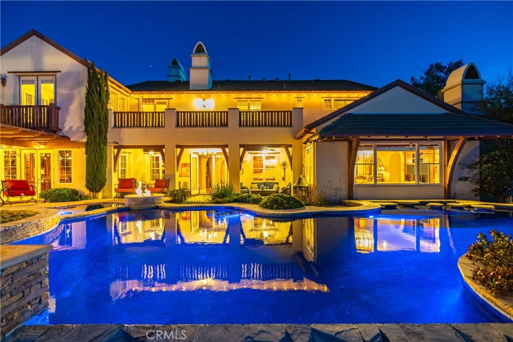 ***LIVE BEAUTIFULLY*** Exquisite Luxury Estate with Breathtaking Golf Course Views. Nestled atop a pristine vantage point overlooking the prestigious Robinson Ranch Golf Course, this extraordinary estate is a masterpiece of elegance, sophistication, and unparalleled craftsmanship. A grand, private driveway leads to a magnificent four-car garage, setting the stage for an opulent entrance through a stately arched gateway that welcomes you into a world of refined luxury. The state-of-the-art, fully owned solar system includes 3 power walls and ensures both sustainability and significant energy savings year after year. Boasting five lavish bedrooms and six impeccably designed bathrooms, this estate is an entertainer’s dream. The gourmet chef’s kitchen is an epicurean delight, featuring top-of-the-line stainless steel appliances, a double oven, an oversized built-in refrigerator, custom cabinetry, and gleaming granite countertops. The kitchen seamlessly flows into a spacious great room and sunlit breakfast nook, offering breathtaking views of the lush landscape. An elegant butler’s pantry and temperature-controlled wine cellar further elevate this home’s grandeur. For those who love to entertain, the handcrafted, custom-built bar is the ultimate gathering space, perfect for hosting guests with style and sophistication. The grand staircase ascends to the exquisite master suite, a private retreat featuring a tranquil reading room, a private balcony with sweeping views of the golf course and mountains, and an opulent master bath complete with a spa-inspired soaking tub, dual vanities, and custom finishes. The upper level also offers a state-of-the-art media room, three spacious guest bedrooms, and a well-appointed laundry suite. Stepping into the backyard is nothing short of breathtaking. Designed for unrivaled luxury and entertainment, this outdoor oasis features a resort-style infinity-edge pool with a spa, cascading waterfalls, and a gas fire pit, creating a truly enchanting ambiance. The outdoor kitchen is a chef’s paradise, complete with a built-in BBQ, refrigerator, beer tap, and a striking stone fireplace, perfect for intimate gatherings or grand celebrations under the stars. Surrounded by scenic walking paths, lush green spaces, and an array of hidden gems, this estate is a rare jewel that embodies the epitome of fine living. Experience the pinnacle of luxury, where elegance meets tranquility in this one-of-a-kind dream home.