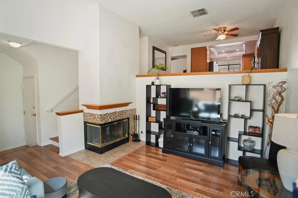 Beautifully designed 3 bedroom, 3 bath multi-level townhome in Santa Clarita offering approximately 1,268 sq ft of comfortable living space. Interior features vaulted ceilings in the living room, wood flooring throughout, and a cozy fireplace. Remodeled kitchen includes granite counters, modern appliances, and a garden window providing natural light. Flexible floorplan includes a main-floor bedroom and bathroom with shower, ideal for guests or office use. Two additional bedrooms are located upstairs including the primary suite. Mid-landing area provides additional space suitable for a small office or reading area. Private front entry patio offers outdoor seating space. Home includes a two-car attached, direct access side-by-side garage. Community amenities include a pool and park areas, along with a large greenbelts and nearby access to the Santa Clarita bike & trail system. Conveniently located to shopping, dining, schools, parks, and freeway access. No Mello Roos Taxes. ** FNMA Approved effective 3/4/2026 for conventional financing.