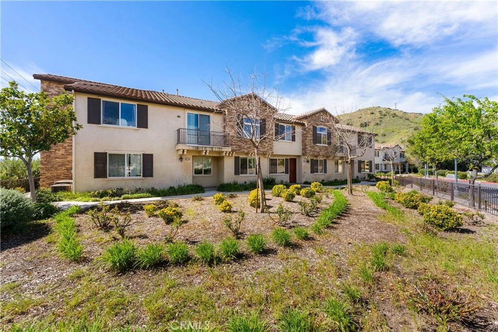 Turnkey and Stylish Town home Built- in 2010 in Canyon Country! 2 bedroom 2 bathrooms. Centrally located to many of the essential amenities, shopping centers, restaurants, excellent schools, highways, parks, and trails. Features wood flooring, high ceilings, tons of natural light, plus two Balconies, one of which has beautiful mountain views!! This stylish 2-bedroom, 2-bathroom home offers the perfect blend of comfort, privacy, and modern living. Step inside to discover a bright and open floor plan featuring updated flooring throughout As a corner unit with only one shared wall, you'll enjoy the abundant natural light, and enhanced privacy. Outside, resort-style amenities await, including a sparkling community pool and beautifully maintained grounds, all nestled within a quiet and well-kept neighborhood. Clothes washer, dryer and refrigerator are included