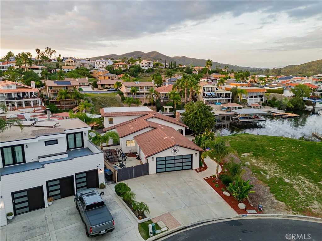 WATERFRONT | HOT TUB | HIGHLY UPDATED | LAKE VIEWS | RIGHT OFF MAIN LAKE | GATED COMMUNITY | CLOSE TO PARKS - Experience the ultimate in lakefront living at this stunning and updated 3 bed, 2 bath home nestled on a peaceful cul-de-sac in the prestigious, guard-gated community of Canyon Lake. Perfectly positioned on the water with its own 22-foot boat slip, this residence combines stylish modern updates with the warmth of California living, featuring a bright, open-concept layout with soaring ceilings and picture windows that frame incredible lake views. The spacious living and dining areas flow seamlessly across the beautiful LVP flooring and right into a stunning newly remodeled kitchen with stylish quartz countertops, custom cabinetry, soft close drawers, tile backsplash, stainless steel appliances and a full built-in bar with matching counters. The primary suite serves as a private sanctuary with a large walk-in closet, direct access to the upper deck for more incredible views, and a luxuriously remodeled bath boasting an oversized sunken slate-tiled shower. Two additional guest rooms on the main floor, a stunning guest bath with perfect side door to come up from the lake, convenient main-floor laundry room inside the home and a whole house fan. The exterior features a wrap-around lower deck perfect for grilling, storing paddleboards, or soaking in the hot tub at sunset with your favorite beverage in hand while taking in all the beauty of the lake views. Practicality meets luxury with a gorgeous & modern two-car garage featuring a 30-amp EV charger, a gated side yard for trailer or RV storage, and a backyard oasis where local geese and herons frequently visit the shoreline. Canyon Lake is a private gated golf cart community with a stunning private lake, ski course, pickleball courts, golf course, hiking, biking & horse trails, tons of parks & sandy beaches, a spectacular community lodge & restaurant, impressive private pool area, sport courts and much more! Say no more....this one has it ALL! This property is more than just a home; it is a serene retreat where every day feels like a VACATION in a community that offers a lifestyle that almost non can match!!