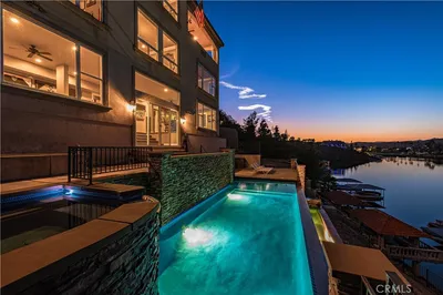 Set behind the gates of Canyon Lake, this unbelievable 5 bedroom, 5.5 bath waterfront estate is the definition of resort-style luxury—where architectural presence, scale, and lifestyle converge across 6,047 sq ft, all powered by 36 owned Tesla solar panels. Designed for both elevated everyday living and unforgettable entertaining, the home welcomes you on the mid-level through an impressive double-door entry or by one of the two attached garages. Rich wood flooring flows throughout this level, setting a warm and sophisticated tone. Highlights include a cinematic theatre room, gated wine room and private ensuite bedroom. The extraordinary kitchen, which opens to an expansive covered balcony with lake views, is truly a chef’s dream. This culinary space is impeccably appointed with high-end appliances to include a refrigerator/freezer, 4-burner cooktop with griddle, oven, two warming drawers, microwave and microwave drawer, wine cooler, beverage center, ice maker, built-in coffee system, two dishwashers, two oversized islands, prep sink and a generous walk-in pantry equipped with washer/dryer. A great room with fireplace and half bath complete this level. Ascend the grand staircase or take the private elevator to the upper level, where the luxurious primary suite serves as a true retreat, featuring a fireplace, soaking tub, walk-in shower, two private water closets, and an expansive walk-in closet with in-suite washer and dryer. This level also offers an additional ensuite bedroom and Jack-and-Jill bedrooms, thoughtfully designed for privacy and comfort. The lower level is where lakefront living truly comes to life, offering an additional room (currently used as a 6th bedroom), full bath with washer/dryer, built-in bar, and spacious open game room that flows seamlessly outdoors. Enjoy year-round entertaining with a lazy river resort-style pool and spa, outdoor kitchen, and direct access to the private lake, complete with dock, boat lift, and beach entry—a rare and coveted combination. Beyond the home, residents enjoy access to Canyon Lake’s premier amenities, including an 18-hole golf course, community restaurants, tennis and pickleball courts, skate park, equestrian center, baseball fields, and multiple parks. Description alone cannot capture the scale, craftsmanship, and lifestyle this estate offers. This is a must-see property. Please call to schedule your private showing.