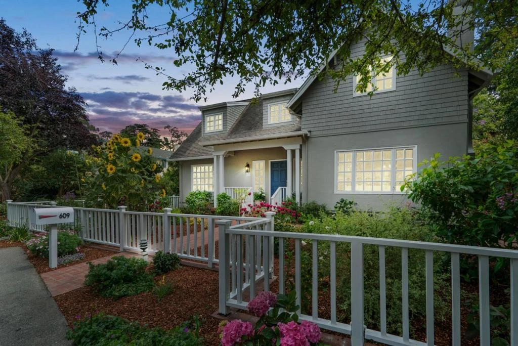 A once-in-a-lifetime chance to own your dream home on Depot Hill, Capitola's most prestigious neighborhood. This stylish house is the perfect primary home or coastal retreat, just steps to the quaint seaside resort of Capitola by the Sea, w/its shops, restaurants & beaches. Featuring inlaid hardwood floors, crown molding, marble finishes, gas fireplace & beautiful architectural touches throughout. New paint, refinished floors, & updated fixtures, this bright, inviting house is move-in-ready. A spacious living room with built-in cabinets & fireplace, formal dining room, eat-in kitchen, large laundry/utility room, half bath, & a den/family room w/built-in bookcases. Upstairs are three bedrooms, a study area, & two full baths. Skylights, high ceilings & ocean peeks create a spacious, sunny open feel throughout this home. A white picket fence, flowers, mature landscaping, & brick pathways in the sunny gardens in the front & back of this generous lot have a coastal cottage garden feel. French doors lead to a private back yard & back patio This home in a peaceful cul-de-sac seamlessly blends elegance w/a coastal lifestyle, just perfect for living well & for entertaining friends & family. Don't miss the opportunity to own a home in this exclusive neighborhood in Capitola.
