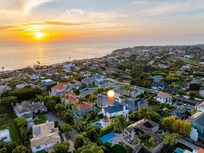 A truly unique offering in Cardiff-by-the Sea. This impressive ocean view home boasts 6 bedrooms, 4.5 baths from an expansive, pool sized lot (with over 115' of backyard width). The entry level features: sit down ocean views, 2 bedrooms/2.5 baths, an office (or secondary primary suite), hardwood flooring throughout, vaulted ceilings, custom paneling/mill work, a masonry dual sided fireplace, sizeable bonus room, beautiful laundry area/secondary workspace and a large garage w/8' door and 10' ceilings. The wonderfully designed kitchen has all the amenities; large island with ample seating, farmhouse sink, built-in seating/nook, walk-in pantry/storage, custom cabinetry, pot filler, and more. The home's secondary level offers 3 bedrooms, and two baths saturated with light and volume. The primary suite has been appointed with amazing features that only accentuate the horizon line ocean views; vaulted beamed ceiling, ocean/sunset view deck, spa like primary bath/retreat, walk-in closet with all the built-in features expected. The down to the studs' remodel was completed in 2015 and the approximate 1,800 sqft. addition was completed in 2019 with thoughtful architectural design and skilled craftsmanship. This home sits prominently atop all of Cardiff overlooking the expansive coastline and city lights below delivering a one-of-a-kind sense of home. This is a California coastal gem.