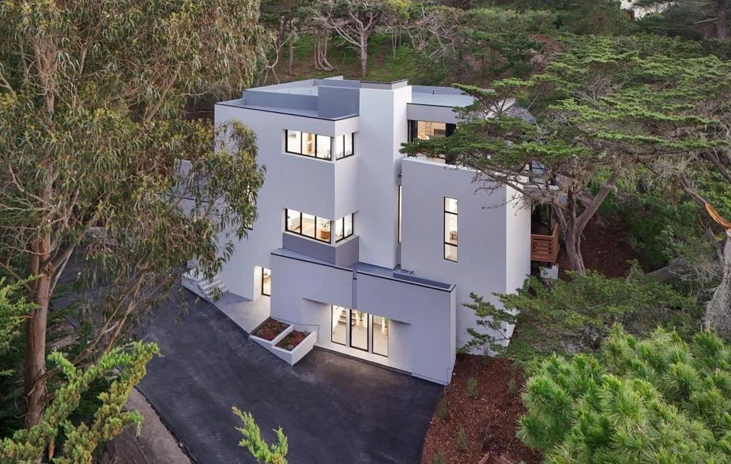 You've never seen one like this before. A brand-new construction on one of the most highly coveted streets in the Carmel Highlands, this staggering residence rises like a pristine white beacon amidst the cypresses, proposing a novel way to revel in the incomparable beauty of the Monterey Peninsula. A chic bedroom suite and full-scale gymnasium round out the first floor, where an elevator waits in a glassed-in reception area to usher guests up to the top levels. Ultra-modern design reigns supreme in every room, with each architectural choice feeling bold, smart, surprising, and intensely rewarding. Imagine windows that stretch all the way from your feet to impossibly high ceilings in all four bedrooms; spa-like ensuite bathrooms with colossal walk-in showers; a freestanding soaking tub; secret decks for sunbathing; and multiple little reading and relaxation nooks encased in glass where you can drift off or drink in sublime ocean views. The top floor primarily comprises an open concept kitchen and living area anchored by views of the Pacific. Fold back the entirety of the glass wall separating this space from a stunning sunroom awash in light, color, and the splendors of nature. Once you have seen a true work of art like this property, there's simply no settling for anything less.