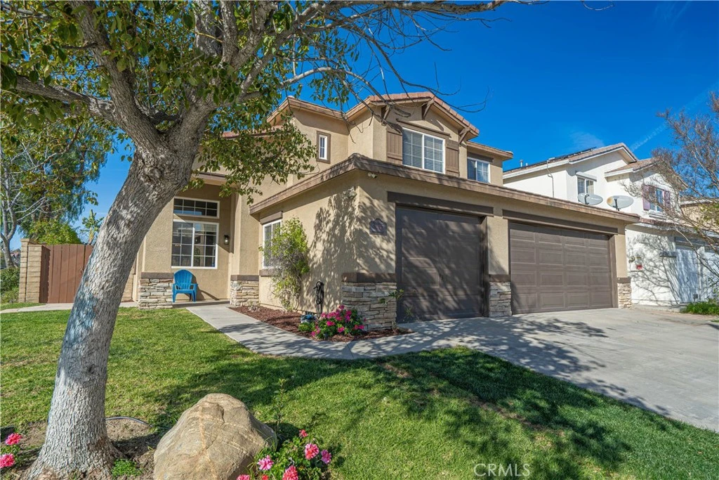 Home Is Where The Heart Is with this beautifully upgraded residence that combines modern design, smart-home efficiency, and resort-style outdoor living. Set on a desirable corner lot, this move-in-ready home has been thoughtfully improved throughout to support both everyday comfort and effortless entertaining. Inside, new vinyl flooring runs throughout the home, creating a cohesive feel. The fully remodeled kitchen is the centerpiece, featuring quartz countertops, crisp white cabinetry, stainless steel appliances, a modern vent hood, and ample storage, perfectly positioned to flow into the main living and dining areas. The living room offers a warm and inviting space with a cozy fireplace and abundant natural light, while sliding glass doors create seamless indoor-outdoor living. The two downstairs bedrooms provide flexibility for a home office, guest room, or playroom. Upstairs, the primary suite is a true retreat, showcasing a completely reimagined bathroom with a large walk-in glass shower, designer tile, dual-sink vanity, updated fixtures, and clean modern finishes. Secondary bathrooms are spacious and well-appointed, offering updated vanities and a timeless, neutral palette. The backyard is designed for year-round enjoyment, anchored by a covered patio with ceiling fans, a built-in BBQ and outdoor refrigerator, and multiple seating and play areas. A sparkling pool and spa are framed by turf landscaping and a safety fence, complemented by a new app-controlled pool filter and heater system for convenience and peace of mind. Additional highlights include a zoned HVAC system for separate upstairs and downstairs climate control, Tesla solar panels, an electric vehicle charger, and a dedicated indoor laundry room with built-in storage. The community of Castaic also offers endless recreation, a beautiful lake for fishing and boating, scenic hiking and biking trails, swimming, shopping, dining, and easy freeway access for commuters. Don’t miss the opportunity to own this fully updated property offering generous space, modern amenities, and an unbeatable location in the heart of Castaic.