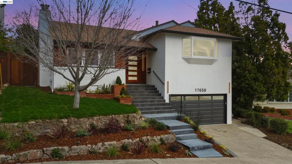 Welcome to 17658 Garland Court, a beautifully reimagined home in the heart of Castro Valley where modern design meets everyday comfort. This fully remodeled 3-bedroom, 2.5-bath residence offers 1,746 sq ft of stylish living space on a 5,908 sq ft lot, thoughtfully updated from top to bottom—inside and out. The home features a stunning gourmet kitchen with high-end appliances that flows seamlessly into the open family room, creating the perfect space for entertaining and daily living. Natural light fills the home, highlighting the fresh finishes throughout. A versatile bonus room adds flexibility for a home office, playroom, or media space. Upstairs, enjoy three spacious bedrooms, including a relaxing primary suite with beautiful Bay views. Recent upgrades include new paint, new flooring, and a beautifully landscaped front and backyard, making this home truly move-in ready. Ideally located near Lake Chabot trails, downtown Castro Valley shops, and popular restaurants, this home offers the perfect blend of comfort, convenience, and lifestyle.