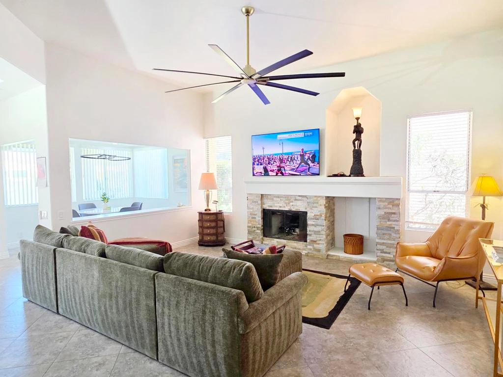 Seasonal rental rates: May 1-Oct 31, 2026 $4,000/month; Nov 1, 2026-Apr 30, 2027 $5,800-$6,200/month. Short-term rentals available with a 3-day minimum stay. Welcome to your desert escape in Desert Princess Country Club. This updated 2-bedroom, 2-bath villa offers beautiful golf course and mountain views and is ideal as a seasonal getaway. The spacious floor plan features two large bedrooms, remodeled bathrooms, and an open living area that opens to a private patio for relaxed indoor-outdoor living. Community amenities include multiple pools and spas, tennis and pickleball courts, a renovated fitness center and spa, an on-site restaurant, and a 27-hole championship golf course. Cable TV, Wi-Fi, and trash service included.