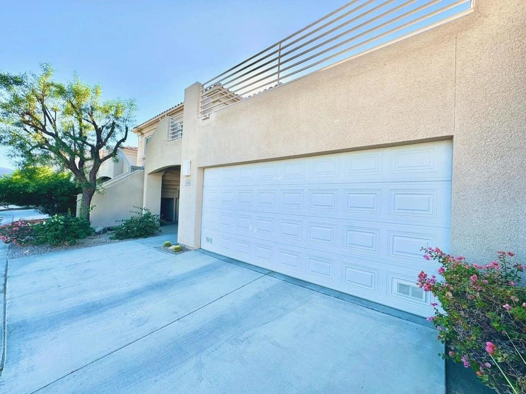 Welcome to Lantana at Cimarron, a community built in 2008. This condominium is on a ground-floor location, offering a spacious open concept design with 2 bedrooms, 2 bathrooms, and 1,478 sq. ft. of comfortable living space. The second bedroom has its own private entrance from the front of the home, making it ideal for guests or a home office. Enjoy private front and back patios with stunning views, an attached two-car garage, and a large indoor laundry room. Brand NEW HVAC installed in 2025. --- Residents have access to the central courtyard, pool, and spa, and it is adjacent to the Cimarron Golf Club, and minutes from Downtown Palm Springs and PSP Airport. This home combines comfort, convenience, and the best of desert living in Cathedral City. --- It is tenant-occupied by long-term tenants paying $3,000 on a month-to-month, making it an instant ideal investment or option to occupy!