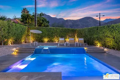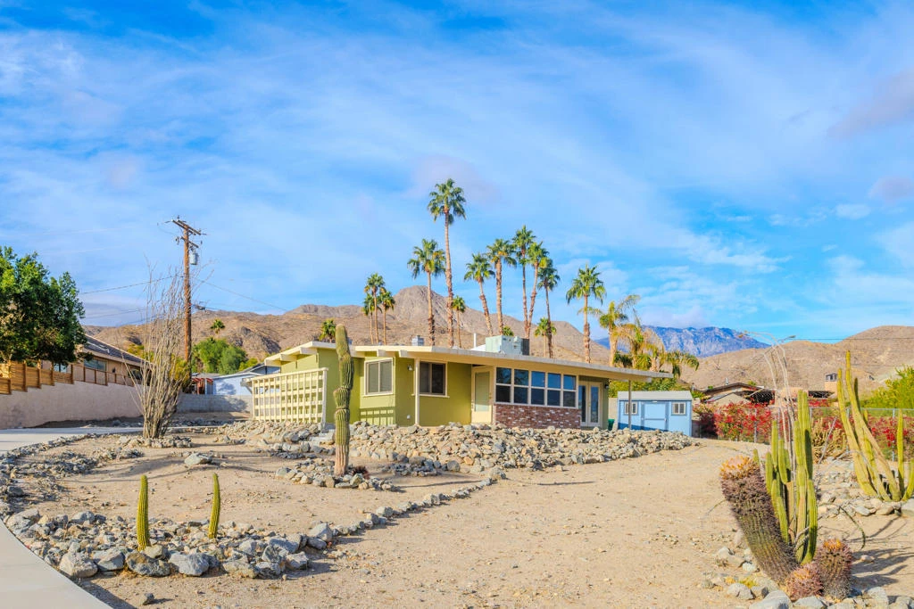 This is a rare opportunity to own this nearly 1/2 ACRE property with a vintage mid-century artist's bungalow high in the Cathedral City Cove. Step outside to the expansive, fully fenced property and experience a tranquil oasis with desert landscaping, lush hedges, and breathtaking valley views, city light views, & panoramic mountain views. The covered patio offers a perfect retreat for relaxing evenings, with ample space. Imagine a resort-like pool, a raised bed herb garden, or a serene Zen garden - this is the perfect canvas for your personal touches. The quiet, walkable neighborhood is ideal for strolls and dog walking. Inside, you'll find classic midcentury lines and a layout brimming with potential. This artist's retreat oozes charm, serenity, and character throughout, featuring natural wood beams, tongue & groove wood ceilings, a classic kitchen, a cozy space with great flow & views from every room. It's the perfect home to enjoy your morning coffee while watching the sunrise & admiring the natural beauty of the desert-landscaped grounds. This is truly a property to be admired and to create your personal PARADISE & don't forget it is located on PARADISE Way. (This is one of the original homes built in the upper Cove and is situated on one of the premium estate-like lots). The Cove is a highly desirable area surrounded by the Santa Rosa Mountains and is adjacent to Palm Springs and Rancho Mirage. All information deemed accurate, Buyer to verify. Welcome to the Cove!