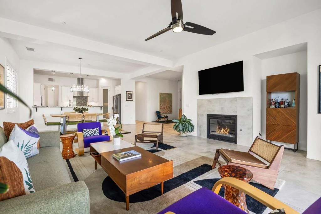 Sun, style, and resort living come together in this exceptional desert escape, perfectly positioned inside Desert Princess, offering some of the desert's best views, a highly convenient location, fee-simple land ownership, and short-term rental flexibility.Built in 2019, this gorgeous Plan 2 at Arroyos offers 3 bedrooms, 2.5 bathrooms, and 1,951 sq. ft. of open-concept living designed for both comfort and style. The living, dining, and kitchen areas flow seamlessly to a beautiful outdoor patio, creating an effortless indoor outdoor lifestyle that truly defines desert living.The backyard is a showstopper. A private, resort inspired oasis featuring a custom Pebble Tec pool and spa with tanning shelf, extensive landscaping, and serene greenbelt views. Enjoy peaceful mountain vistas, including views of the snow capped San Gorgonio Mountains, with no homes directly behind you, just open space and privacy.Inside, the home is loaded with upgrades, including custom window coverings and shutters throughout, upgraded cabinetry and granite countertops, designer lighting, ceiling fans, premium flooring, a walk-in pantry, tankless water heater, fireplace, and 10-foot ceilings. The spacious primary suite features a spa like bath with soaking tub, frameless glass shower, and a large walk in closet. The two additional bedrooms and baths are thoughtfully positioned on the opposite side of the home for privacy.Desert Princess offers pay as you play golf with no membership requirement, tennis, pickleball, full fitness facilities, clubhouse with year round dining, multiple pools and spas, 3.8 miles of walking trails, and beautifully maintained grounds. HOA dues include internet, trash service, full yard landscaping, pest control, and more, making ownership easy and low maintenance.As an added bonus, short-term rentals are allowed, offering flexibility and the opportunity to offset ownership costs when you're not in residence.This is affordable luxury desert living without compromise --> Schedule your private showing and make this exceptional retreat yours.