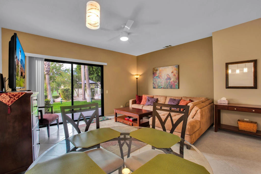 Western Mountain View you can enjoy living in this fabulous 1 bedroom, 2 full bath condo. Located at The Desert Princess Country Club! With a fabulous Western Mountain view, Close to the pool.. Updated appliances, all tile flooring! Just steps away, you can splash into the pool or unwind in the spa! Location is Fabulous and the neighbors are even better!. Extended Land Lease to 2069, a $30,000 savings to buyer! Stackable washer/dryer and single car detached garage... Would make an excellent seasonal rental... Monthly ground rent is low . The Desert Princess has an affordable 27-hole PGA Championship golf course, no Tee-time lotteries, no initiation fees, rated among the best in the valley by GOLF DIGEST. This quiet community is away from the noise yet minutes from everything that is in Palm Springs; restaurants, shopping, casinos, an international airport, the Tramway, Art Museums, Theaters, Acrisure Arena and the Street Fair! Easy to show