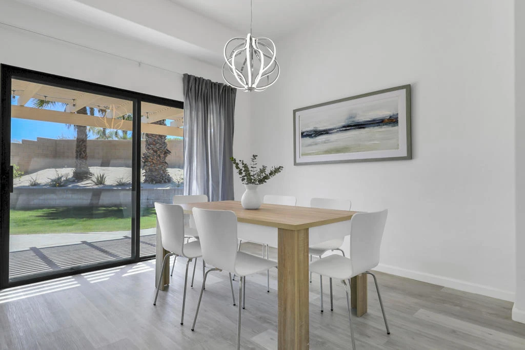 Tucked into the La Pasada neighborhood of Cathedral City, this stylish desert retreat offers the perfect balance of comfort and privacy. Set back from the street, the home sits on an oversized 10,890 square foot lot, featuring 3 bedrooms, 2 bathrooms, separate laundry room, and a light-bright, open-concept layout that maximizes space, and indoor-outdoor flow. At the heart of the home, a renovated kitchen with a breakfast bar, sleek quartz countertops, newer stainless steel appliances, and a seamless connection to the main living and dining areas, all under soaring ceilings that add volume and airiness. The primary suite is a true sanctuary, featuring an updated spa-like bathroom with a soaking tub, walk-in shower, and a generously sized walk-in closet. In addition there are two expansive guest rooms that have high ceilings, fans and large windows. Step into your private south facing backyard paradise, complete with a heated pool, outdoor shower, and stunning mountain views. This home has an impressive 29 solar panel system for energy efficiency installed 5 years ago, buyer to assume lease. Washer, Dryer, kitchen Refrigerator and Rain Soft ECS Water Filtration System included with purchase. Whether you're looking for a full-time residence, seasonal escape, or investment property, this home checks all the boxes with smart upgrades... Close to shopping, dining and I-10 access.
