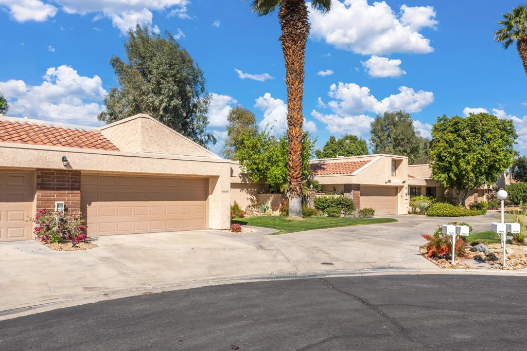 STOP YOUR SCROLL! The one you have been waiting for at the Cathedral Canyon Country Club (East). Get ready to fall in love with this spacious, light-filled beauty! This large 2-bedroom condo features an extra den/office that could easily serve as a 3rd bedroom -- perfect for guests, hobbies, or working from home in style. This stunning listing is clean as a whistle and solid as they come! Not to mention newer tiled flooring and freshly painted walls round out the details. The sellers opted for a PRELISTING inspection so there are no surprises and buyers can be confident when making an offer. This move in ready condo is immaculately maintained and is offered turnkey with high-quality furniture that has stood the test of time.The real showstopper? Those million-dollar mountain views. Endless windows flood the home with natural light, making every room feel bright, airy, and inviting. Morning coffee and sunset evenings will never be the same.This condo sits at the end of a cul-de-sac on the 5th fairway and within a quick jaunt to the community pool. With a large 2 car garage, 2 private patios, spacious and light interior space, this 'feels like home', wrapping you in comfort, begging you to stay awile...and you can- because it's offered turnkey and ready to enjoy!Start packing... because this just might be the one.
