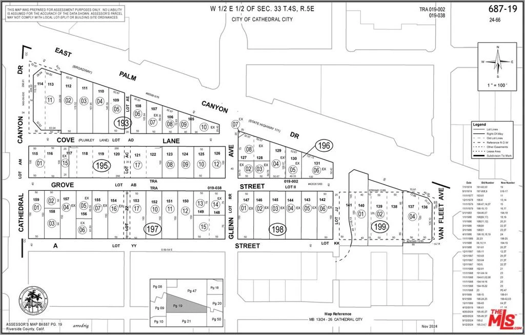 Developers and investors take note. Six residential lots - four contiguous - are now available at Cove & Grove in Cathedral City. Includes APNs 687-195-008, 687-195-009, 687-195-010, 687-195-012, 687-195-003, 687-195-004. Total of six lots/36,591 SQFT. Presenting a compelling opportunity to plan and build a new residential project in a rapidly evolving area. Located just steps from the forthcoming 19-unit luxury community The Jasper, the new Cathedral Cove Shopping Center, Starbucks, and Agua Caliente Casino. Buyer to verify all information through their own investigation.