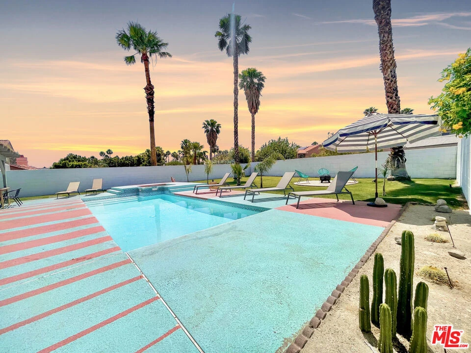 AVAILABLE LONG TERM OR MONTHLY (31+days) - Welcome to this stunning Mid-Century Bohemian Oasis minutes from Downtown Palm Springs! Remodeled in 2021, this stylish and thoughtfully designed home captures the essence of both eras, blending the timeless charm of mid-century aesthetics with the free-spirited vibes of bohemian decor. Step into multiple spacious living areas adorned with vibrant colors, retro furnishings, and eclectic artwork that transport you back to the golden age of design. Sink into the plush sofas and enjoy entertainment on state-of-the-art Smart TVs, perfect for cozy movie nights or catching up on your favorite shows. The kitchen is a true masterpiece, featuring modern amenities seamlessly integrated into the mid-century architecture. Whip up culinary delights with ease using updated appliances and ample counter space. Enjoy your meals in the multiple dining areas with views of the expansive yard.Speaking of the yard, get ready to be amazed! The oversized pool is the centerpiece of the outdoor space, inviting you for refreshing swims or simply basking in the sun on the sun loungers. Unwind in the rejuvenating jacuzzi as you watch the stars twinkle in the night sky. The fire pit area sets the stage for unforgettable evenings. Hungry for relaxation? Lounge in the hammock with a good book and let time slip away. When the day winds down, retreat to the elegantly designed bedrooms. Each room carries its own unique bohemian flair and offers the comfort you need for a restful night's sleep. In addition to the stunning aesthetics, we've incorporated modern conveniences for your comfort. A water softener ensures a luxurious bathing experience, and the entire home is equipped with high-speed Wi-Fi to keep you connected. Located just minutes away from downtown Palm Springs, you'll have easy access to the area's renowned dining, shopping, and entertainment. Come and experience the magic of the desert in a home that effortlessly marries the past with the present. Book your stay today and make unforgettable memories in this enchanting desert haven!