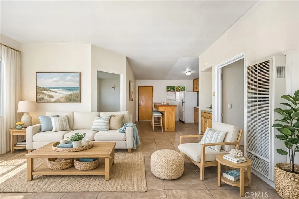 Charming Cayucos beach bungalow with ocean views on the desirable south end of beautiful Cayucos Beach. This inviting cottage captures blue-water views from the property, creating a serene coastal backdrop for everyday living. Enjoy your morning coffee or evening beverage from the spacious front patio or the light-filled living area as you take in the colorsof the sunrise and sunset skies. A cozy breakfast bar defines the entry while opening to a functional kitchen complete with gas range, refrigerator, generous cabinetry, and ample counter space. The rear bedroom offers added privacy and comfortable proportions, located across from the hall bath. Newer tile flooring runs throughout, providing a clean, low-maintenance coastal aesthetic. A covered carport accommodates one vehicle, with additional driveway and street parking available. The expansive front patio and yard offer exceptional outdoor living space with potential for future expansion. Just moments from the beach, sand, and surf, and only minutes to downtown, this delightful cottage is the perfect opportunity to own your own slice of the Central Coast.