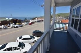 Large studio apartment for rent in Downtown Cayucos. This bright space offers a dedicated bedroom nook and an open living room/kitchenette combo with partial ocean views and close proximity to shops, restaurants, and activities. In a mixed residential/commercial building, each unit is approximately 500 sq ft and includes hardwood and tile floors, tall ceilings, multi-position window coverings, private access, full bathroom with tub/shower combo, vanity area with small closet storage cupboards, kitchenette with refrigerator, stove/oven, and dishwasher. Shared amenities include a built in central vacuum system, laundry room on upper floor with additional cupboard storage, and off-street parking. Residential units have private balconies with partial ocean and Cayucos pier views with beach access just a couple of blocks away.