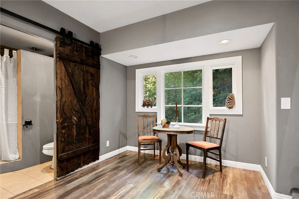 Set among the trees, this charming mountain retreat offers a bright, open living space anchored by a dramatic floor-to-ceiling stone fireplace. Exposed wood-beam ceilings and wide-plank flooring create warmth and scale, while expansive windows and sliding glass doors frame peaceful forest views and fill the home with natural light. The main living area flows effortlessly, ideal for both everyday living and hosting. The home features a cohesive modern-rustic aesthetic with thoughtfully selected finishes throughout. The kitchen is equipped with stainless steel appliances, granite countertops, soft-close drawers, and ample cabinetry, opening to a quaint dining nook overlooking the surrounding greenery. Bedrooms are inviting and comfortable, while the bathrooms showcase clean lines with subtle mountain character. An additional lot accompanies the property, offering valuable flexibility and a rare sense of space. With extra off-street parking, the added land enhances convenience for full-time living, weekend use, or gatherings with guests, while also contributing to increased privacy and separation from neighboring homes. Surrounded by a serene wooded setting, this property delivers a true sense of retreat while remaining conveniently located near local amenities, outdoor recreation, and year-round mountain activities. Well suited as a full-time residence, weekend escape, or investment opportunity, this home captures the essence of refined mountain living.