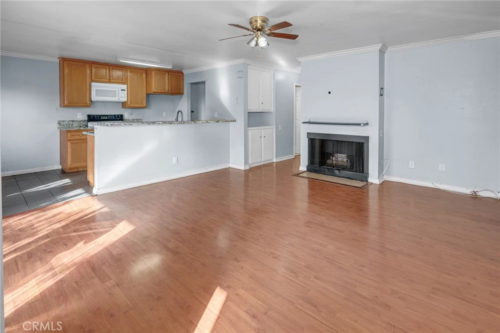Welcome to this beautifully updated condo nestled in the heart of Cerritos. This charming 2-bedroom, 1-bath home offers a perfect blend of comfort and style, with thoughtful upgrades throughout. Inviting living space, highlighted by crown molding and a cozy gas-burning fireplace—ideal for relaxing evenings. The remodeled kitchen features modern finishes, updated appliances, and ample storage, while the updated bathroom adds a touch of elegance to your daily routine. Inside laundry makes chores convenient and efficient. Perched above the garages, this unit provides peace and privacy with no neighbors living beneath. It includes a 1-car garage and an additional uncovered assigned parking space for your convenience. The HOA enhances your living experience by covering water, gas, trash, landscaping, and access to the community pool and spa—perfect for unwinding or entertaining. This home’s central location offers easy access to shopping, dining, and excellent schools. Don’t miss this rare opportunity to own a move-in-ready condo in Cerritos!